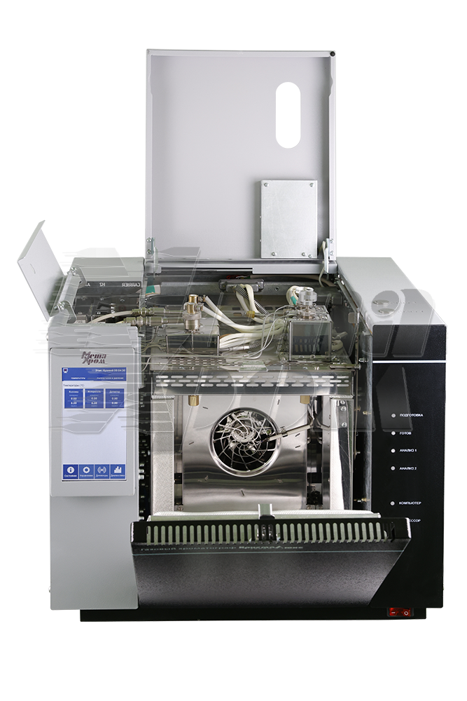 Аналитический блок имеет до трех независимых каналов разделения и обработки информации и состоит из термостата колонок, сменного аналитического модуля и блока электронного управления потоками газов (ЭУПГ). По индивидуальному заказу возможна установка четырех детекторов. Для запуска анализа в каждом канале предусмотрена кнопка «Старт», которая дублируется программной кнопкой.
