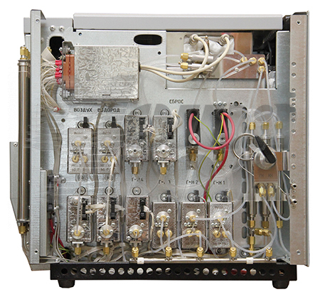На фото: газовый хроматограф «Кристаллюкс-4000М»: вид на пневматическую схему