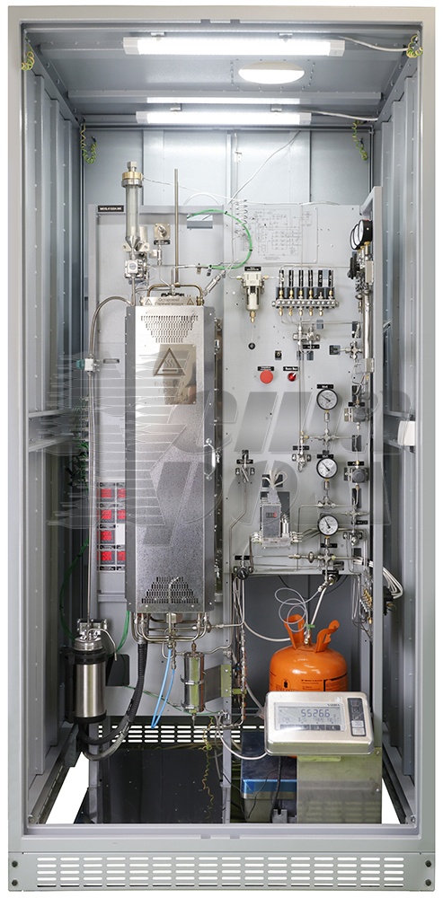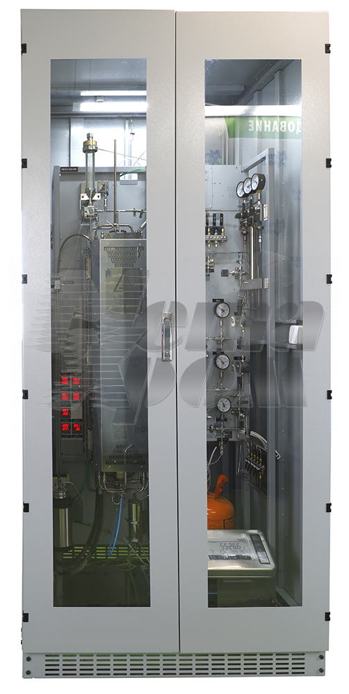 Установка помещена в вентилируемый шкаф со стеклянной запирающейся дверью