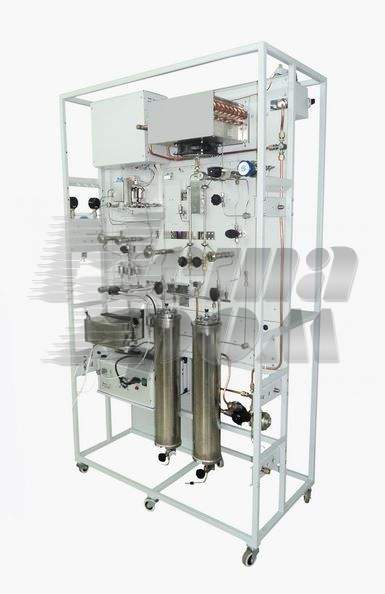 - Термостатированный реактор. Обогрев реактора установки осуществляется в температурных диапазонах от 50 до 600 °С с двухсекционным нагревателем раздвижного типа. Каждая секция оснащена собственным температурным датчиком и нагревателем. Управление работой термостата осуществляется посредством микропроцессора, а рабочие режимы и их формирование отображаются на экране ПК. Реактор оснащен фильтрами-смесителями входного и выходного типа, которые изготовлены из кварцевого песка (фильтры-смесители помещены в отдельные корпуса). В качестве материала изготовления термостатированного реактора использована нержавеющая сталь 12×18Н10Т. Габариты и объем реактора следует уточнять при оформлении заказа на приобретение реакторной установки. На сегодняшний день, реактор выпускается в двух исполнениях: