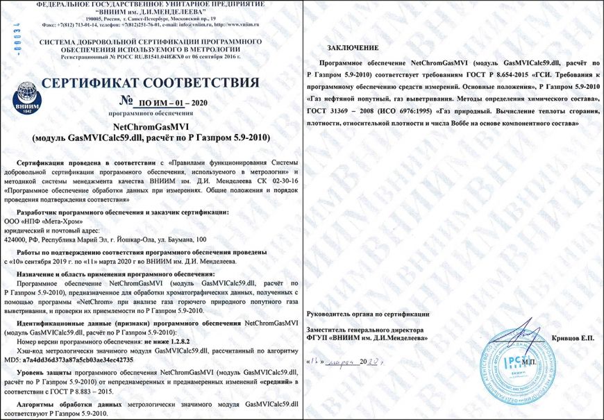 Получен сертификат соответствия программного обеспечения NetChromGasMVI