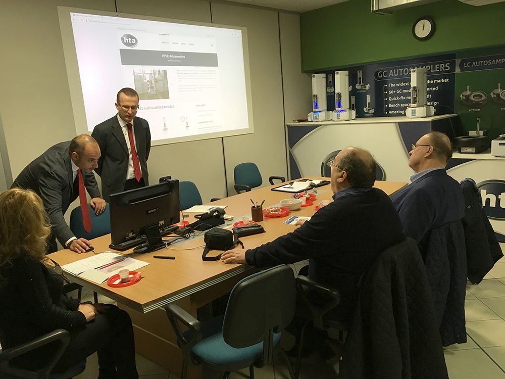 Представители ООО НПФ «Мета-хром» посетили 8 января фирму «HTA s.r.l.» в Брешии (Италия) для углубления сотрудничества. Фирма «HTA s.r.l.» является всемирно известным производителем автоматических устройств ввода пробы в хроматографы. Состоялось ознакомление с работой фирмы «HTA s.r.l.», обсуждение перспективных разработок автосамплеров, принципов сотрудничества между фирмами. Результаты обсуждения должны вылиться в более тесное сотрудничество между фирмами, как в плане разработок, так и в плане расширения продаж хроматографов и автосамплеров.