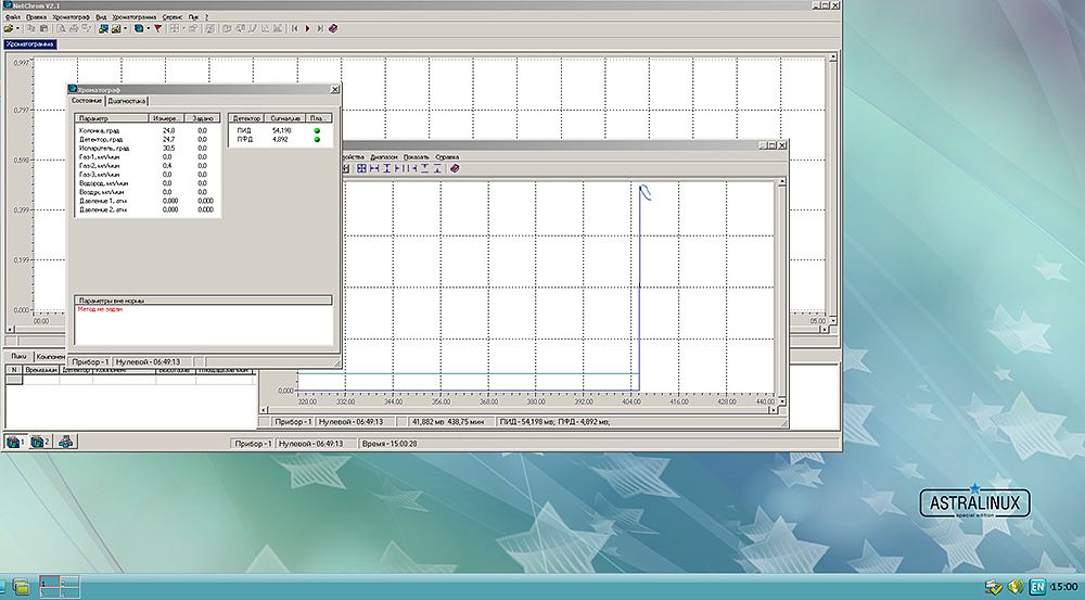Разработана версия программы «NetChrom» для работы под управлением операционной системы «Astra Linux». Хроматограф «Кристаллюкс-4000М» при испытаниях с операционной системой «Astra Linux» показал соответствие техническим требованиям согласно ТУ и поставлен заказчику.