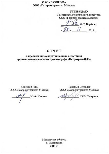 На фото: Отчет о проведении испытаний ПГХ «Петрохром»