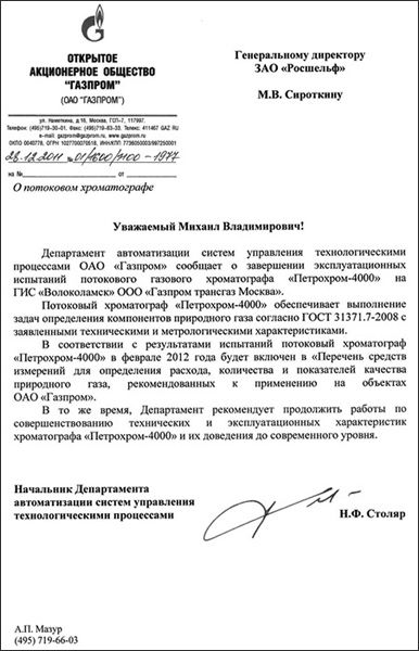 Департамент автоматизации систем управления технологическими процессами ОАО «Газпром» сообщил о завершении эксплуатационных испытаний